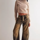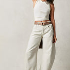 Adrienne-jeansen utmerker seg med sitt vide snitt og klassiske barrel-form, som kombinerer bevegelsesfrihet med en stilfull fremtoning. Det høykvalitets denim-materialet sørger for komfort og holdbarhet, mens det tidløse designet gir allsidige stylingmuligheter. Enten med joggesko eller støvletter – denne jeansen er en allsidig følgesvenn for hverdagen.