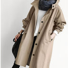 Oppdag den vanntette trenchcoaten for kvinner Alicia med hette, designet for å holde deg tørr og moteriktig i all slags vær. Denne elegante trenchcoaten kombinerer tidløs stil med praktisk vanntetthet, perfekt for uformelle dager eller formelle anledninger. Materialet av høy kvalitet sikrer holdbarhet samtidig som det forblir lett og komfortabelt. Hetten gir ekstra beskyttelse mot regn, og det allsidige designet passer lett til alle antrekk. Hold deg chic og klar for alt, enten det regner eller er sol.