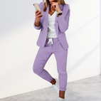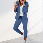 Gjør et moteuttrykk med denne blazeren og buksen laget av førsteklasses stoff. Det moderne designet og de elegante fargene gjør det til et ideelt antrekk for enhver anledning. Lett og behagelig å ha på, gir det en uanstrengt elegant silhuett. Dette varierte settet er perfekt for kontor, arrangementer eller stilige anledninger.