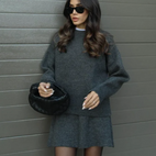 Amelie-settet kombinerer uanstrengt stil med maksimal komfort. Det består av et skjørt og en matchende genser som gir en moderne silhuett som passer til enhver anledning. Laget av høykvalitets stoffer, gir det en behagelig følelse og kan kombineres på mange måter. Ideelt for en avslappet brunch, et møte med venner eller en elegant kveld.