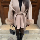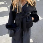 Armani - Elegant, stilig, pelskantet lang frakk for damer