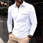 Bernard - Tilfeldig langermet poloskjorte med lomme for menn