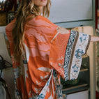 Legg til et snev av eleganse til alle antrekkene dine med vår Chantal Light-Mode kimono for kvinner, prydet med et delikat blomstermønster. Laget av et mykt og lett stoff, faller det vakkert for en flatterende silhuett samtidig som det gir optimal komfort hele dagen. Det allsidige designet lar deg bruke det over uformelle antrekk, kjoler eller til og med innendørsklær for et raffinert utseende. Perfekt for våren, sommeren eller for å bæres over andre klær når det er kjøligere, gir denne kimonoen et snev av stil til garderoben din. Et tidløst stykke, det er ideelt for kvinner som liker å kombinere komfort og mote.