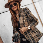 Cheri-blazeren utmerker seg med sitt klassiske rutemønster og smale snitt, som fremhever den feminine silhuetten. Laget av høykvalitetsmateriale, tilbyr den ikke bare et elegant utseende, men også behagelig komfort. Ideell for kontor, møter eller stilige fritidsantrekk – denne blazeren gir enhver antrekk en raffinert touch.