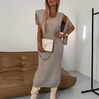 Det strikkede settet «Cherice» blander komfort og stil i et flott sett. Med sitt myke stoff og smarte design er det ideelt for overgangsperioder og kalde dager. Enten du slapper av hjemme eller ser flott ut til hverdags – dette settet gir deg begge deler: varme og trendy stil.