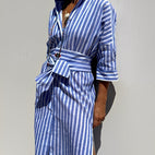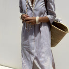 Forbedre din daglige stil med vår lange Christel polokjole for kvinner, med klassiske striper. Designet med en flatterende polokrage og et mykt og pustende stoff, tilbyr den både stil og komfort for å bæres hele dagen. Den lange silhuetten gir et velstelt og elegant utseende, perfekt for uformelle utflukter, arbeid eller vennemøter i helgen. Det tidløse stripemønsteret tilfører et snev av sofistikasjon samtidig som det opprettholder et naturlig chic utseende. Et allsidig must-have i garderoben din, denne kjolen kombinerer moderne stil med avslappet komfort for kvinner som verdsetter komfort og mote.