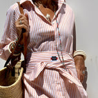 - Allsidig stripet stil: perfekt for arbeid, uformelle arrangementer eller helgeantrekk med en chic touch.