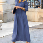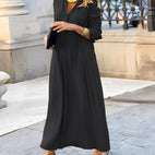Nyt ultimat komfort og stil med vår romslige og komfortable Christèle-kjole, designet for å brukes hele dagen. Laget av et mykt og pustende stoff, holder den deg kjølig og komfortabel selv på de varmeste dagene. Den romslige og flytende silhuetten gir stor bevegelsesfrihet samtidig som den fremhever alle silhuetter. Ideell for uformelle utflukter og helgeturer, kombinerer denne lange kjolen komfort og mote uten anstrengelse. Uunnværlig og allsidig, den er perfekt for kvinner som søker en elegant og avslappet look.