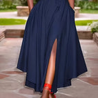 Skjørtet „Cordelia“ kjennetegnes av sitt enkle, ensfargede utseende med moderne snøring på siden og praktisk glidelås i ryggen. Den behagelige passformen har også sidelommer, som gir både funksjon og stil. Et allsidig plagg som kan brukes både til daglig og ved spesielle anledninger.