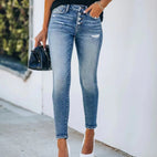 Cyrilla - Løs Slim-Fit-Jeans med Hull for Damer