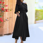 Dahlia - Elegant skulderløs kjole med belte for damer