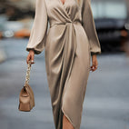 Hvorfor «Diantha – Elegant V-Neck Dress with Lantern Sleeves» bør være i klesskapet ditt: