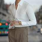 Stikk den inn for en ryddig og profesjonell opptreden eller bruk den løst for en avslappet kveld. Den er laget av en elegant blanding av bomull, bambus, lycra og polyester, og tilbyr fleksibilitet, rynkefrihet og komfort hele dagen. Med den karakteristiske 'Paramontura'-kragen gir den et rent, skarpt utseende med tidløs stil.