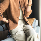 Edda er en kasjmir-strikkejakke med knappelukking, som står for luksuriøs komfort og tidløs stil. Den er laget av høykvalitets kasjmir og gir en varm, behagelig følelse med et mykt strukturert strikkestoff. Knappelukkingen foran gir mange stylingmuligheter og gjør den passende for både hverdagslige og mer elegante anledninger.