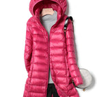 Lett varme: Elina-jakken er designet for å holde deg varm uten å være for tung. Den ultralette dunfyllingen gir akkurat riktig mengde varme, noe som gjør den ideell for kjølige dager uten å tynge deg ned.