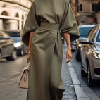 Oppdag den elegante kjolen med lanterneermer og belte for kvinner Élise, en chic kjole designet for å kombinere sofistikasjon og flatterende detaljer. Med sine elegante lanterneermer og matchende belte fremhever den din silhuett samtidig som den tilfører en touch av feminin sjarm. Laget av et mykt og høykvalitets stoff, tilbyr denne kjolen komfort og eleganse hele dagen. Perfekt for formelle anledninger, fester eller stilige hverdagsantrekk, den passer lett med hæler eller støvler. Tilgjengelig i klassiske og sesongbaserte farger, er denne kjolen et must i enhver garderobe.