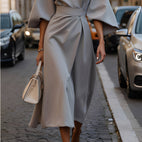 Kjolen med lanterneermer og belte Élise kombinerer stil, komfort og tidløs eleganse for alle anledninger.