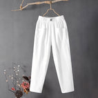 Oppdag den perfekte kombinasjonen av komfort og stil med vår avslappede Elodie-bukse i bomull og lin for kvinner. Laget av en førsteklasses blanding av bomull og lin, tilbyr denne buksen pustende mykhet og stor holdbarhet, noe som gjør den ideell for daglig bruk. Med en elastisk midje gir den en fleksibel passform som følger deg gjennom hele dagen. Enten du slapper av hjemme, gjør ærender eller nyter en avslappet utflukt, sikrer Elodie-buksen optimal komfort uten å ofre stil. Lett og allsidig, det er et must i garderoben til den moderne kvinnen.