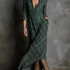 Den lange Émilien-kjolen for kvinner med slag i ruter er den perfekte blandingen av sofistikasjon og daglig komfort. Laget av et mykt og flytende stoff, faller den vakkert samtidig som den gir optimal komfort hele dagen. Kragen med subtile grønne ruter gir et klassisk og elegant preg til en allsidig silhuett. Dens lengde og flatterende snitt gjør den ideell for uformelle utflukter, kontoret eller spesielle anledninger. Lett og pustende, Émilien-kjolen er et must i garderoben for kvinner som søker naturlig eleganse.