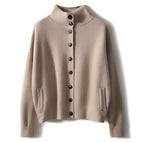 Genseren "Evelynn" har en løs form og høy krage som holder deg varm. De dekorative knappene er en stilig detalj, mens det tykke stoffet gir en lun følelse. Flott for høst og vinter – enten hjemme, på jobb, eller på farten.