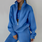 Everly joggedress gir en ideell kombinasjon av komfort og stilfull utforming. Laget av mykt, luftende stoff, gir den en deilig følelse, enten du er hjemme, trener eller på farten. Med sin romslige passform og moderne stil er den en allsidig følgesvenn for rolige dager og aktive øyeblikk.