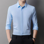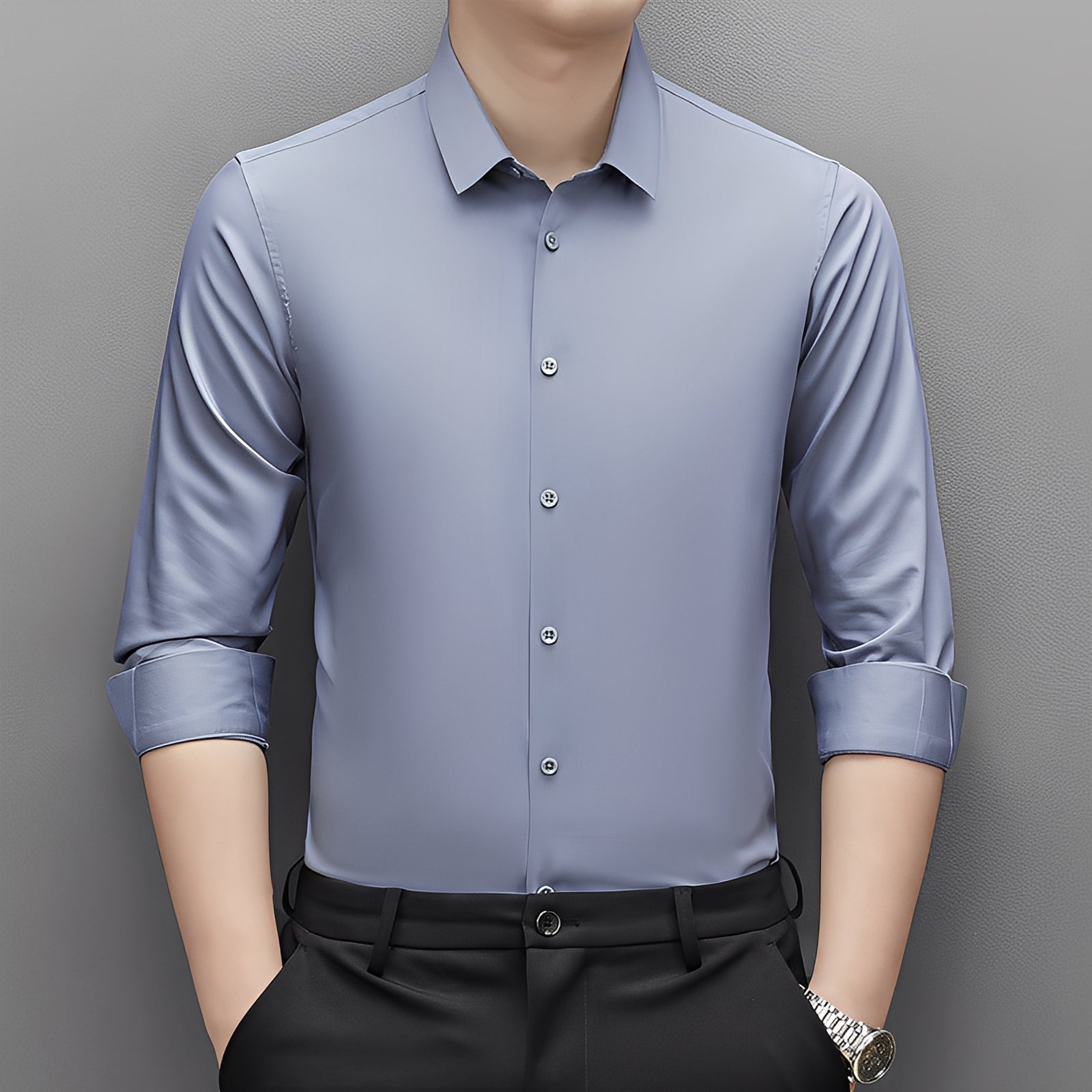 Forbedre garderoben din med den elastiske krøllfrie skjorten Félix: stil og komfort hele dagen.