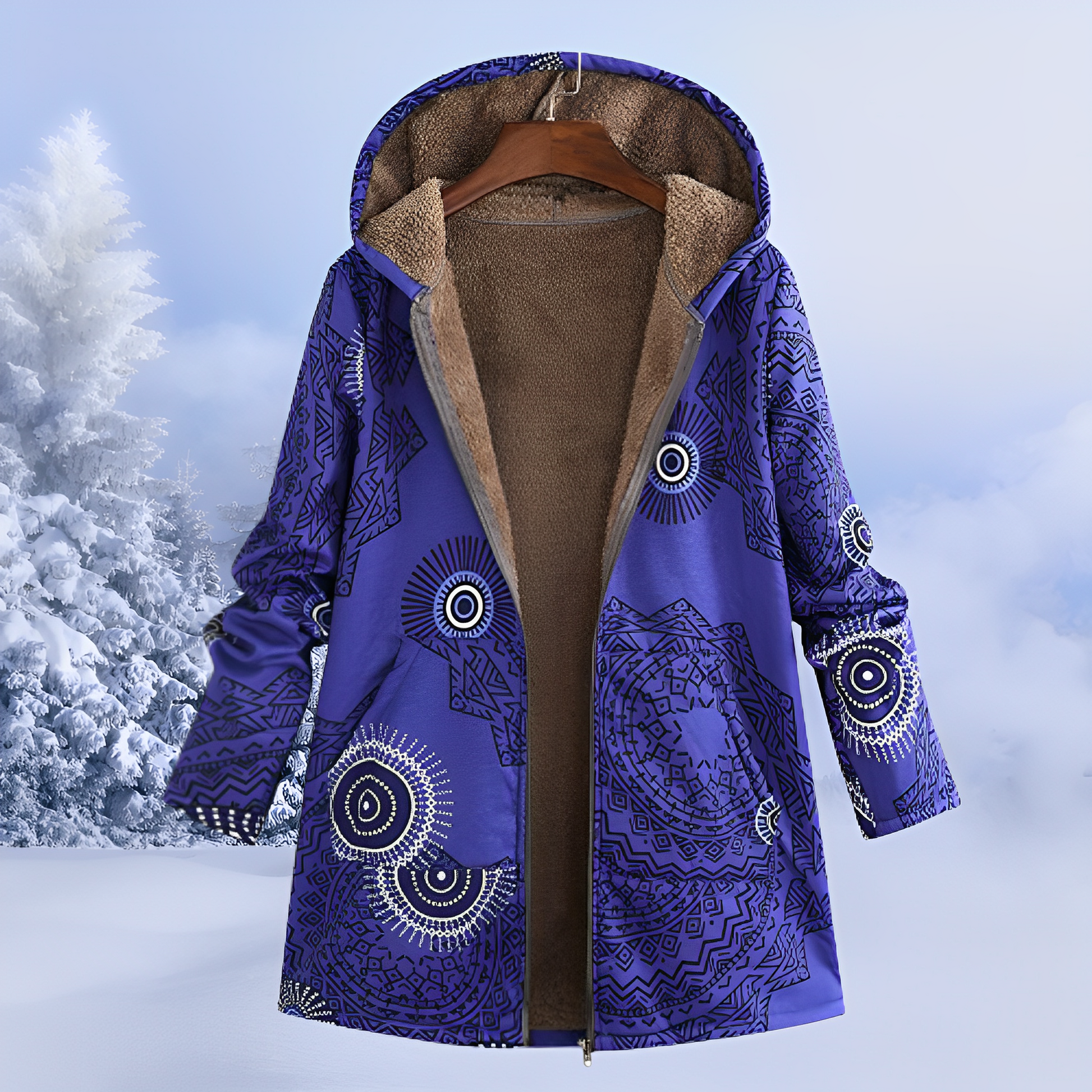 FluffCoat er en vinterjakke med mønster som kombinerer stil og varme. Med iøynefallende mønstre utenpå skiller den seg ut i vintermengden. Det luksuriøst myke fleecefôret gir unik komfort og varmebeskyttelse.
