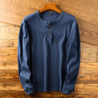 - Moderne Henley-design – Tidøst utseende med elegant knappliste.
