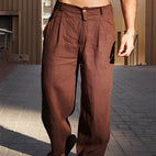 Den vide buksen for menn Francisque tilbyr en perfekt kombinasjon av avslappet komfort og naturlig stil. Laget av et mykt og pustende stoff, holder den deg kjølig og komfortabel selv når det er varmt. Den vide passformen gir stor bevegelsesfrihet samtidig som den opprettholder en moderne og elegant silhuett. Allsidig og lett, denne buksen kan kombineres med avslappede topper, poloskjorter eller skjorter for jobb, helg eller ferie. Komfortabel, elegant og lett å bære, Francisque-buksen er et must i garderoben din.