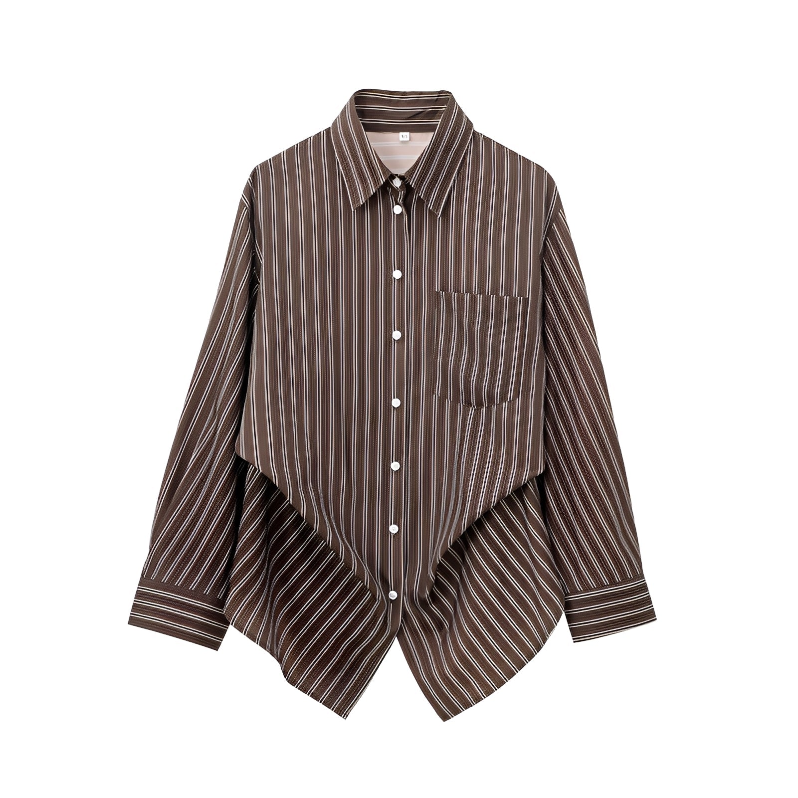 That's why 'Frederica - Fashionable Batwing striped long-sleeve shirt' should be in your wardrobe: