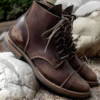 Lærstøvlene «Garrick» blander solid materiale med et kraftig design. Laget av førsteklasses lær, gir de stabilitet, komfort og varighet – ideelt for daglig bruk. Uansett om det er til dagligdags, utendørsaktiviteter eller med urbane antrekk, er disse støvlene allsidige og alltid en moteriktig følgesvenn.