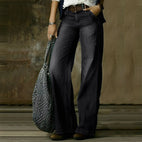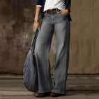 Gisselle-jeansen imponerer med sitt retro-inspirerte design med vide ben og høy midje. Laget av robust, men fleksibel denim, gir den en flatterende passform og en behagelig følelse. Den klassiske femlommestilen kompletterer utseendet og gjør denne jeansen til en allsidig følgesvenn for hverdag og fritid.