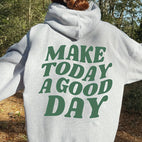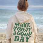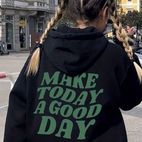 Her er Good Day! - Bomullshettegenser med budskap - den bringer positivitet og hygge til din hverdagsstil. Hettegenseren i høykvalitets bomull er ikke bare behagelig og koselig, men setter også et klart utsagn som lar dagen din starte positivt.