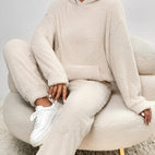 Det Hailie Fleece-settet gir myk, koselig varme for avslappende øyeblikk hjemme. Laget av høykvalitetsmateriale, gir det en behagelig følelse og forblir lett og pustende. Settet inkluderer overdel og bukse med praktisk hette for ekstra kos. Perfekt for avslappende kvelder, helger eller koselige morgenstunder.