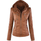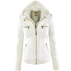 Janene - Tilfeldig, vanntett jakke i skinn med hette for kvinner