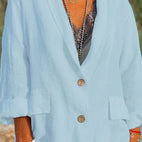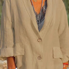 Det høykvalitets linmaterialet gir ikke bare behagelig pusteevne, men også en komfortabel passform. Jakken er perfekt for ulike anledninger, enten det er for en avslappet dag på kontoret, en bytur eller en avslappet kveld utendørs.