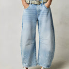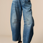 En jeans som balanserer naturlighet og trendy komfort.