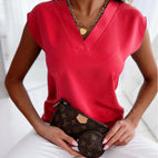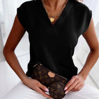 Jordana - Tilfeldig topp med korte ermer og V-hals for kvinner