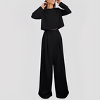 Joslyn-settet består av topp og matchende bukse og tilbyr maksimal komfort med et moderne design. Den løse passformen gir bevegelsesfrihet, mens de myke materialene sikrer en behagelig følelse. Perfekt for fritid, hjemmekontor eller avslappede møter med venninner.