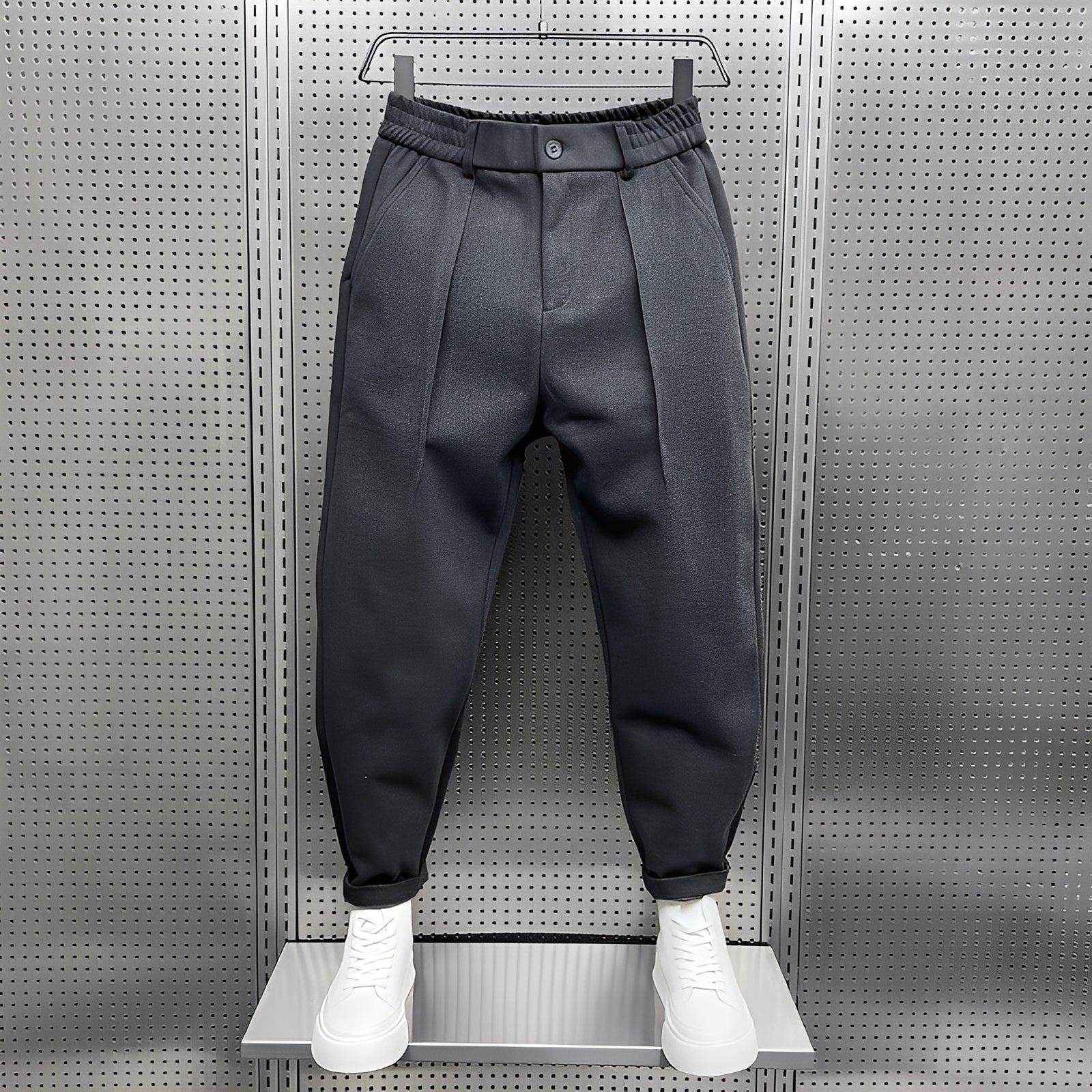 Oppdag Kane Elegant-buksen, en sofistikert dressbukse for menn, designet for å forbedre garderoben din med en tidløs stil. Laget med presisjon for en ren silhuett og en skreddersydd passform, er denne buksen ideell for arbeid, formelle arrangementer eller eksklusive uformelle anledninger. Blandingen av førsteklasses stoffer gir både struktur og komfort, og sikrer deg et upåklagelig utseende uten å ofre bevegelsesfrihet. Med sine nøytrale farger og subtile finish passer denne buksen perfekt inn i din eksisterende garderobe. Velg Kane Elegant-buksen for en allsidig og raffinert stil som passer både til jobb og brunch.