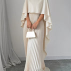 Maxikjolen Katherine begeistrer med sin høye utringning, vide batwing-ermer og den plisserte, flytende skjørtet. Den løse passformen gir behagelig bærekomfort, mens det elegante designet mykt omfavner hver bevegelse. Perfekt for festlige anledninger, middagseventer eller spesielle øyeblikk der en stilfull opptreden er nødvendig.