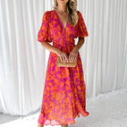 Den Kathy – Lang kjole med V-hals kombinerer elegant stil med høy komfort. Den attraktive V-halsen fremhever utringningen, mens den lange lengden tilfører en elegant touch til enhver garderobe. Laget av høykvalitetsstoff, sikrer den letthet og holdbarhet. Et ideelt valg for å forbli stilig og komfortabel på sommerdager eller ved spesielle anledninger.