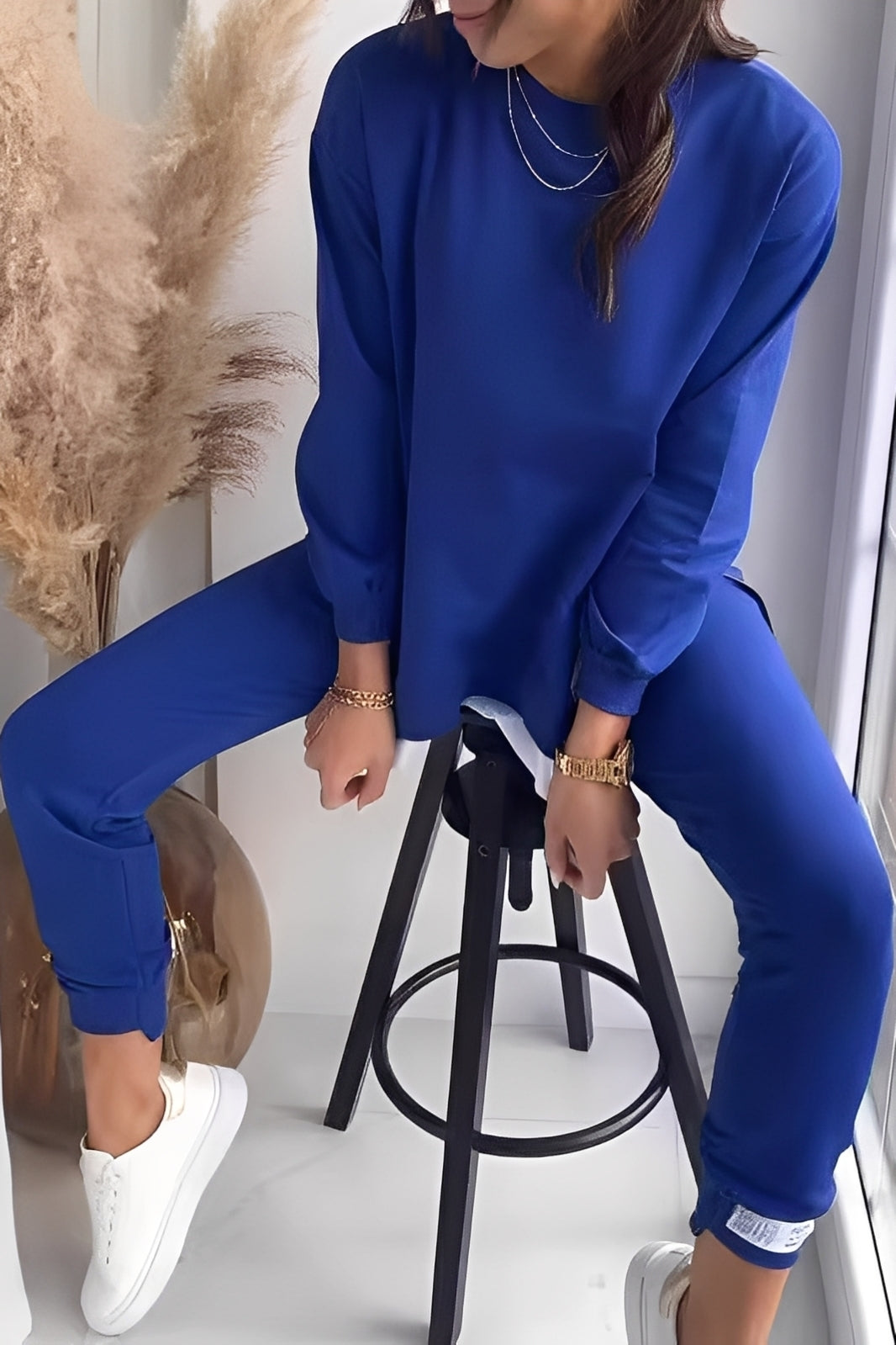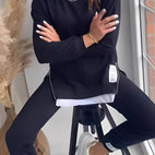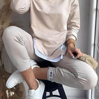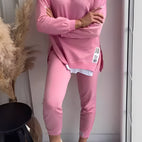 Sett «Kristine» blander en behagelig genser med tilhørende bukse for et harmonisk antrekk. Laget av mykt, pustende stoff, gir det høy komfort – enten for rolige timer hjemme eller uformelle fritidslooks på farten. Med sin moderne design er det både praktisk og stilfullt.