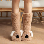 Krystelle-sokkene er laget av mykt, tykt plysjmateriale og holder føttene dine behagelig varme. Det søte tegneseriehundemotivet gir en glad aksent, mens den sklisikre sålen gir sikkert grep på glatte gulv. Ideell for hjemme, for å slappe av på sofaen eller for koselige vintermorgener. Disse bodensokkene kombinerer varme, komfort og leken stil i ett.