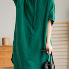 Krystina skjortekjole skiller seg ut med sitt enkle design og det komfortable lette linmaterialet. Med sin løse form er den perfekt for varme dager og gir en avslappet stemning. Den klassiske skjorte-bluse stilen gir kjolen et tidløst uttrykk, mens den jadegrønne fargen tilfører friskhet og modernitet. Ideell for hverdag, fritid eller sommerferier.
