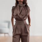 Gi stilen din et moderne preg med denne stilige ermeløse overallen. Den høye snittet sammen med beltet fremhever figuren din og gir samtidig en avslappet eleganse for ulike anledninger.