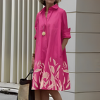 Oppdag vår elegante skjortekjole for kvinner, et plagg som kombinerer moderne stil og komfort. Ideell for ulike anledninger, lar den deg forbli stilig hele dagen, enten det er på kontoret, til middag eller ved en spesiell begivenhet.