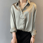 Denne blusen i edel satengsilke står for eleganse og stil.