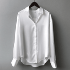 Magnolia - Satengsilkebluse med knapper er et elegant og fleksibelt plagg, laget av skimrende satengsilke og har et glatt og skinnende utseende. Dens klassiske design med fine knapper virker elegant.