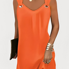 Det Marie – Sommerkjole kombinerer en feminin V-hals med en stilig O-ring-dekor for en frisk og figursmigrende stil. Den ermeløse tanktop-snittet gir komfort og bevegelighet på solrike dager. Lett og luftig, den passer både til avslappede tider og finere anledninger. Et uunnværlig plagg for å oppgradere sommergarderoben din.